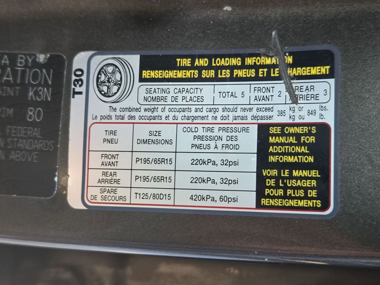 - Front Tire Size: P195/65R15