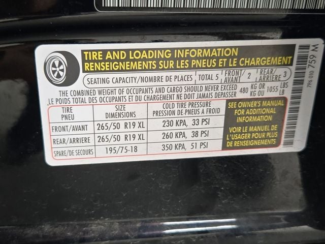 Equipped with 19 x 8.5 Everest Alloy Wheels, 3.70 Axle Ratio, 4-Wheel Disc Brakes, 8 Speakers, ABS brakes, Air Conditioning, Alloy wheels, AM/FM radio: SiriusXM, Anti-whiplash front head restraints, Auto-dimming Rear-View mirror, Automatic temperature control, Brake assist, Bumpers: body-color, Compass, Delay-off headlights, Driver door bin, Driver vanity mirror, Driver's Seat Mounted Armrest, Dual front impact airbags, Dual front side impact airbags, Electronic Stability Control, Exterior Parking Camera Rear, Four wheel independent suspension, Front anti-roll bar, Front Bucket Seats, Front dual zone A/C, Front fog lights, Front reading lights, Fully automatic headlights, Garage door transmitter: HomeLink, Genuine wood console insert, Genuine wood dashboard insert, Genuine wood door panel insert, Heated door mirrors, Heated Front Bucket Seats, Heated front seats, High intensity discharge headlights: Bi-Xenon, Illuminated entry, Leather Shift Knob, Low tire pressure warning, Memory seat, Navigation System, Occupant sensing airbag, Outside temperature display, Overhead airbag, Overhead console, Panic alarm, Passenger door bin, Passenger seat mounted armrest, Passenger vanity mirror, Power door mirrors, Power driver seat, Power Liftgate, Power moonroof, Power passenger seat, Power steering, Power windows, Radio data system, Radio: Touch-Screen w/8 Speaker Sound System, Rain sensing wipers, Rear anti-roll bar, Rear reading lights, Rear seat center armrest, Rear window defroster, Rear window wiper, Remote CD player, Remote keyless entry, Roof rack: rails only, Security system, Speed control, Speed-sensing steering, Split folding rear seat, Spoiler, Steering wheel mounted audio controls, Tachometer, Telescoping steering wheel, Tilt steering wheel, Traction control, Trip computer, Turn signal indicator mirrors, Variably intermittent wipers, and Vienna Leather Seating Surfaces.