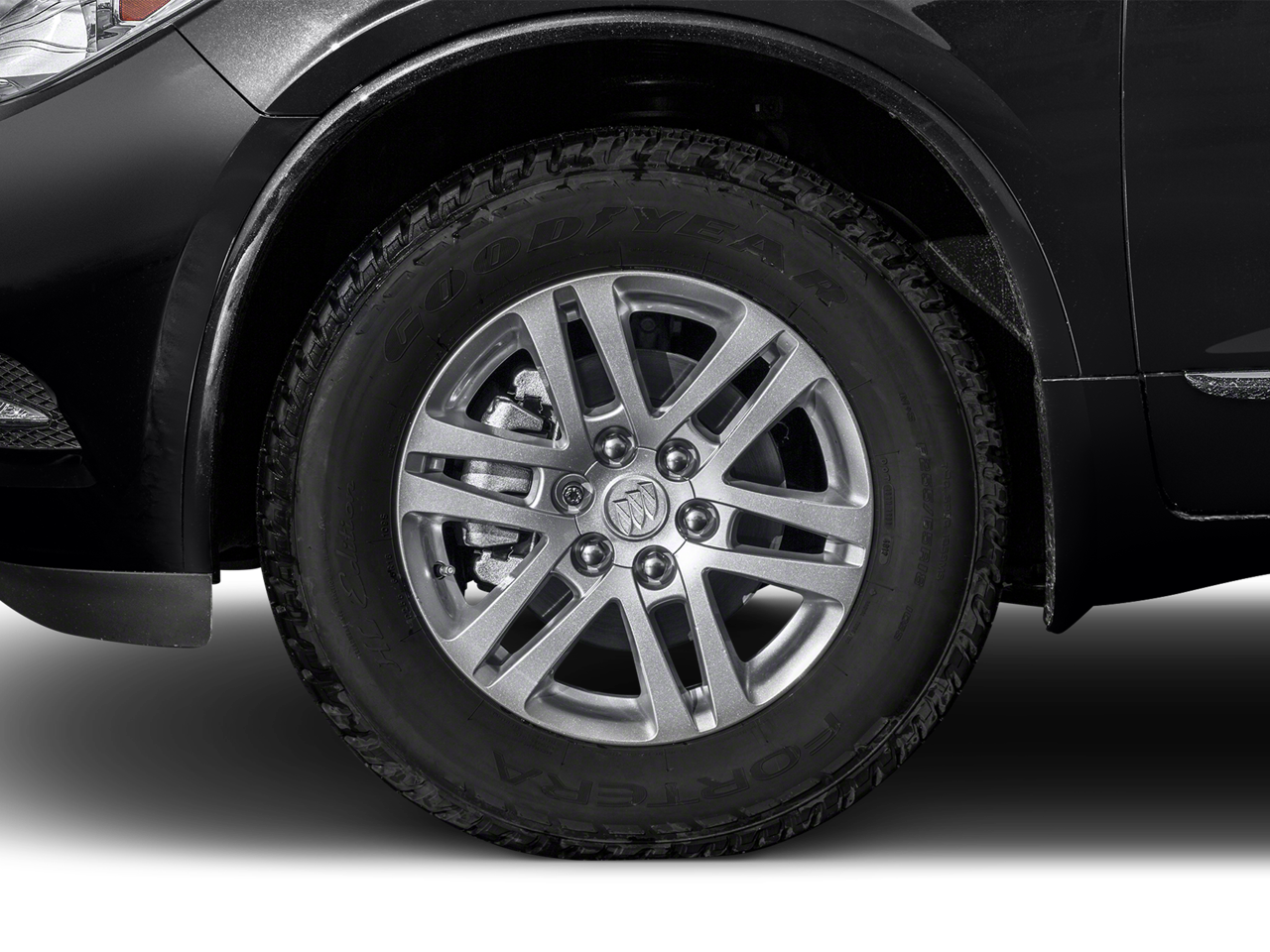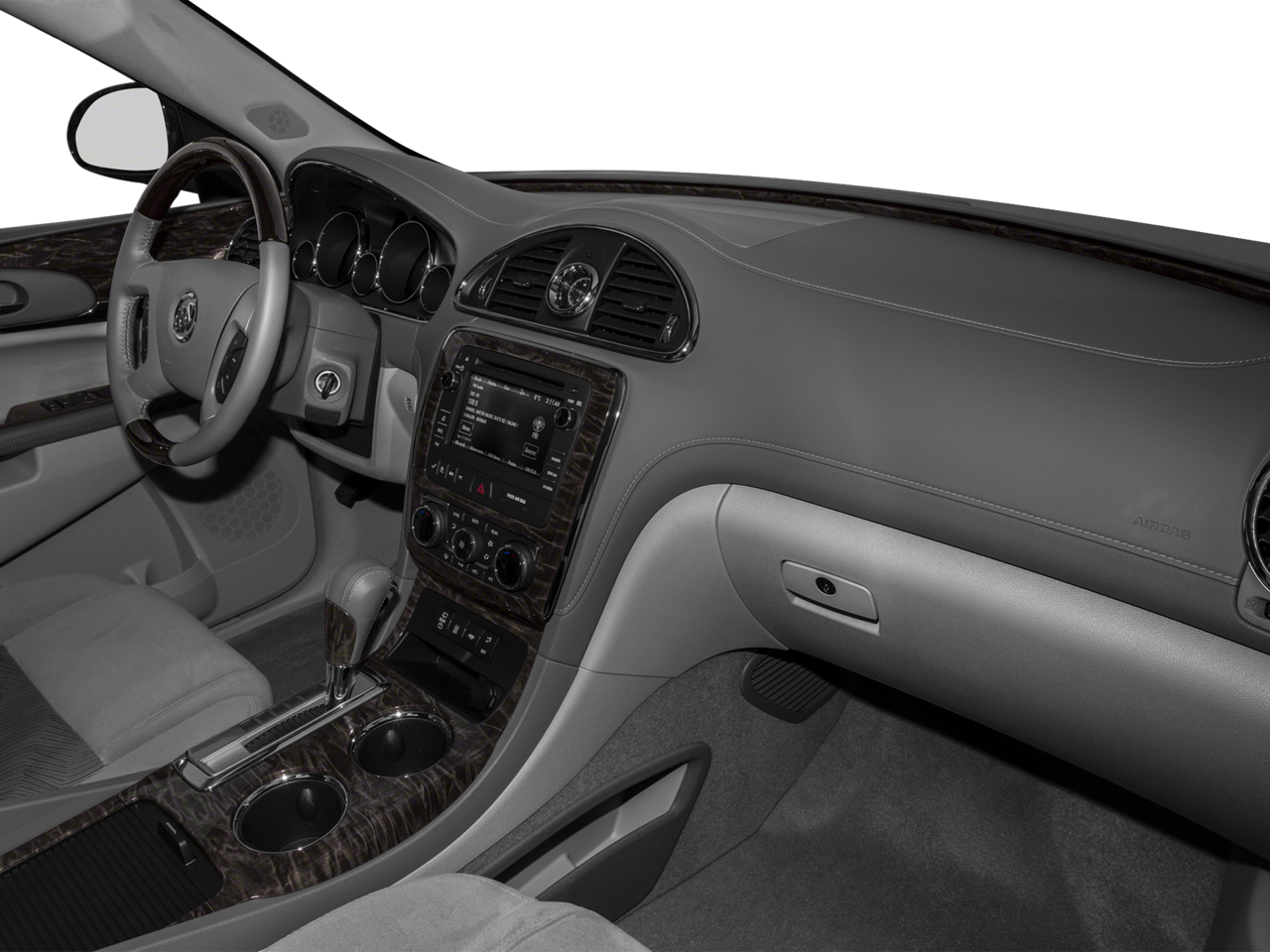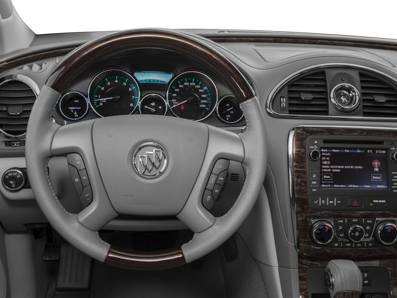 Equipped with Enclave Tuscan Edition (Bronze-Toned Grille and Wheels: 20 Chrome-Clad Cast Aluminum w/Bronze Pockets), Hit The Road Accessory Package (Body-Color Molded Assist Steps and Cargo Area All-Weather Floor Mat), Preferred Equipment Group 1SL (8-Way Power Driver Seat Adjuster, 8-Way Power Passenger Seat Adjuster, Heated Driver & Front Passenger Seats, Heated Steering Wheel, Memory Settings, and Side Blind Zone Alert w/Cross Traffic Alert), Roof Rack Cross Rail Package, 3.16 Axle Ratio, 3rd row seats: split-bench, 4-Wheel Disc Brakes, 6 Speakers, 7-Passenger Seating, ABS brakes, Air Conditioning, Alloy wheels, AM/FM radio: SiriusXM, Auto-dimming Rear-View mirror, Automatic temperature control, Brake assist, Bumpers: body-color, CD player, Compass, Delay-off headlights, Driver door bin, Driver vanity mirror, Dual front impact airbags, Dual front side impact airbags, Electronic Stability Control, Emergency communication system: OnStar Guidance, Exterior Parking Camera Rear, Four wheel independent suspension, Front anti-roll bar, Front Bucket Seats, Front Center Armrest w/Storage, Front dual zone A/C, Front reading lights, Fully automatic headlights, Garage door transmitter, Heated door mirrors, Heated front seats, Heated steering wheel, High intensity discharge headlights: Bi-Xenon, Illuminated entry, Leather steering wheel, Low tire pressure warning, Memory seat, Occupant sensing airbag, Outside temperature display, Overhead airbag, Panic alarm, Passenger door bin, Passenger vanity mirror, Perforated Leather-Appointed Seat Trim, Power door mirrors, Power driver seat, Power Liftgate, Power passenger seat, Power steering, Power windows, Radio data system, Radio: Color Touch AM/FM/CD w/IntelliLink, Rear air conditioning, Rear anti-roll bar, Rear Parking Sensors, Rear reading lights, Rear window defroster, Rear window wiper, Remote keyless entry, Roof rack: rails only, Security system, SiriusXM Satellite Radio, Speed control, Speed-sensing steering, Spoiler, Steering wheel mounted audio controls, Tachometer, Telescoping steering wheel, Tilt steering wheel, Traction control, Trip computer, Turn signal indicator mirrors, Variably intermittent wipers, Voltmeter, and Wheels: 19 10-Spoke Aluminum.