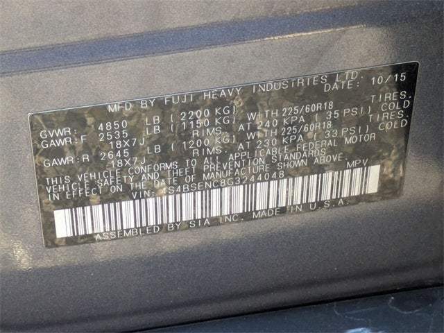 Equipped with Moonroof Package & Keyless Access & Navi & EyeSight (Aha, harman/kardon Surround Sound Speaker System, Radio: Subaru Starlink 7.0 Multimedia Nav System, Smartphone Integration, and Vehicle Information Display), Popular Package #5 (All Weather Floor Mats, Bumper Cover (Rear), Exterior Auto Dimming Mirror For BSD, Rear Seat Back Protector, and Splash Guards), Power Moonroof Package (Auto-Dimming Rear View Compass Mirror w/Homelink), AWD, 12 Speakers, 4-Wheel Disc Brakes, 4.111 Axle Ratio, ABS brakes, Adaptive Cruise Control, Air Conditioning, Alloy wheels, AM/FM radio: SiriusXM, Anti-whiplash front head restraints, Automatic temperature control, Brake assist, Bumpers: body-color, CD player, Driver door bin, Driver vanity mirror, Dual front impact airbags, Dual front side impact airbags, Electronic Stability Control, Emergency communication system, Exterior Parking Camera Rear, Four wheel independent suspension, Front anti-roll bar, Front Bucket Seats, Front Center Armrest w/Storage, Front dual zone A/C, Front fog lights, Front reading lights, Fully automatic headlights, harman/kardon® Speakers, Heated door mirrors, Heated front seats, Heated rear seats, Heated Reclining Front Bucket Seats, High-Intensity Discharge Headlights, Illuminated Engine Start/Stop Switch, Illuminated entry, Lane Departure Warning System, Leather Shift Knob, Low tire pressure warning, Memory seat, Navigation System, Occupant sensing airbag, Outside temperature display, Overhead airbag, Overhead console, Panic alarm, Passenger door bin, Passenger vanity mirror, Perforated Leather-Trimmed Upholstery, Pin Code Access, Power door mirrors, Power driver seat, Power Liftgate, Power passenger seat, Power steering, Power windows, Pre-Collision System, Radio data system, Radio: Subaru Starlink 7.0 Multimedia Plus System, Rear anti-roll bar, Rear seat center armrest, Rear window defroster, Rear window wiper, Remote Engine Start - Push Button, Remote keyless entry, Remote Transmitter w/Removable Key, Roof rack, Security system, Speed control, Speed-sensing steering, Split folding rear seat, Spoiler, Steering Responsive Fog Lights (SRF), Steering wheel mounted audio controls, Steering-Wheel Paddle-Shift Control Switches, Tachometer, Telescoping steering wheel, Tilt steering wheel, Traction control, Trailer Hitch, Trip computer, Turn signal indicator mirrors, Twilight Blue Metallic Body Side Molding, Variably intermittent wipers, and Wheels: 18 x 7.0 Aluminum Alloy w/Machine Finish.