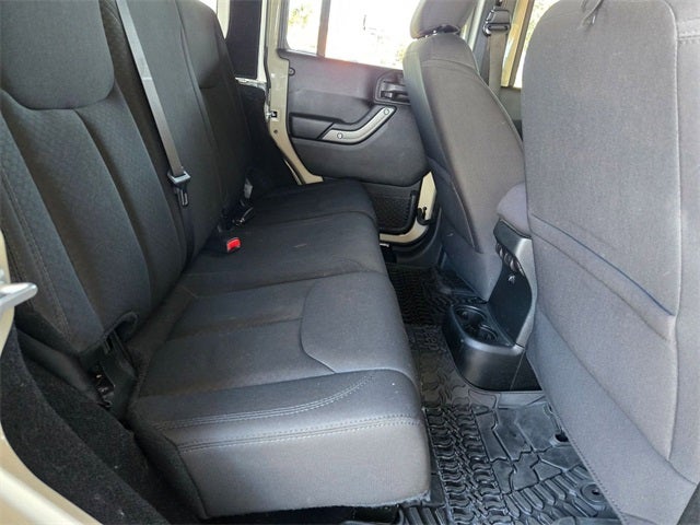 Equipped with Connectivity Group (Remote USB Port, Tire Pressure Monitoring Display, Uconnect Voice Command w/Bluetooth®, and Vehicle Information Center), Quick Order Package 24S (17 x 7.5 Aluminum Wheels, Auto-Dimming Mirror w/Reading Lamp, Chrome/Leather Wrapped Shift Knob, Deep Tint Sunscreen Windows, Front 1-Touch Down Power Windows, Leather Wrapped Steering Wheel, Power Convenience Group, Power Heated Mirrors, Power Locks, Remote Keyless Entry, and Security Alarm), Trailer Tow Group (Class II Receiver Hitch and Trailer Tow w/4-Pin Connector Wiring), Quick Order Package 23C, 5-Speed Automatic, Alpine 9-Speaker w/All Weather Subwoofer, Black 3-Piece Hard Top, Delete Sunrider Soft Top, Freedom Panel Storage Bag, Rear Window Defroster, Rear Window Wiper/Washer, 1-Yr SiriusXM Radio Service, 16 x 7.0 Luxury Styled Steel Wheels, 3.21 Rear Axle Ratio, 4-Wheel Disc Brakes, 8 Speakers, ABS brakes, Air Conditioning, AM/FM radio, Brake assist, CD player, Cloth Seats w/Adjustable Head Restraints, Compass, Driver door bin, Driver vanity mirror, Dual front impact airbags, Electronic Stability Control, Freedom Top Hard Top Headliner, Front anti-roll bar, Front Bucket Seats, Front Center Armrest w/Storage, Front fog lights, Integrated roll-over protection, Low tire pressure warning, MOPAR Slush Mats, Normal Duty Suspension, Occupant sensing airbag, Outside temperature display, Passenger door bin, Passenger vanity mirror, Power steering, Radio: 130, Radio: 430, Rear anti-roll bar, SIRIUS Satellite Radio, Speed control, Split folding rear seat, Steering wheel mounted audio controls, Tachometer, Tilt steering wheel, Traction control, Trip computer, and Variably intermittent wipers.