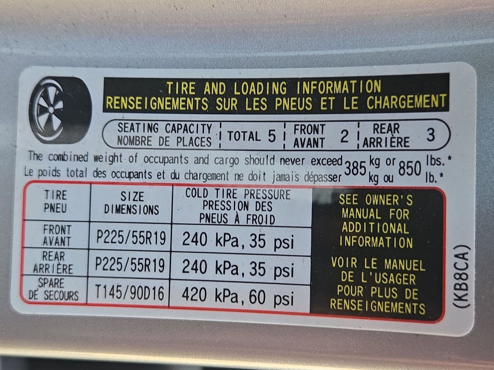 - Tires: P225/55R19