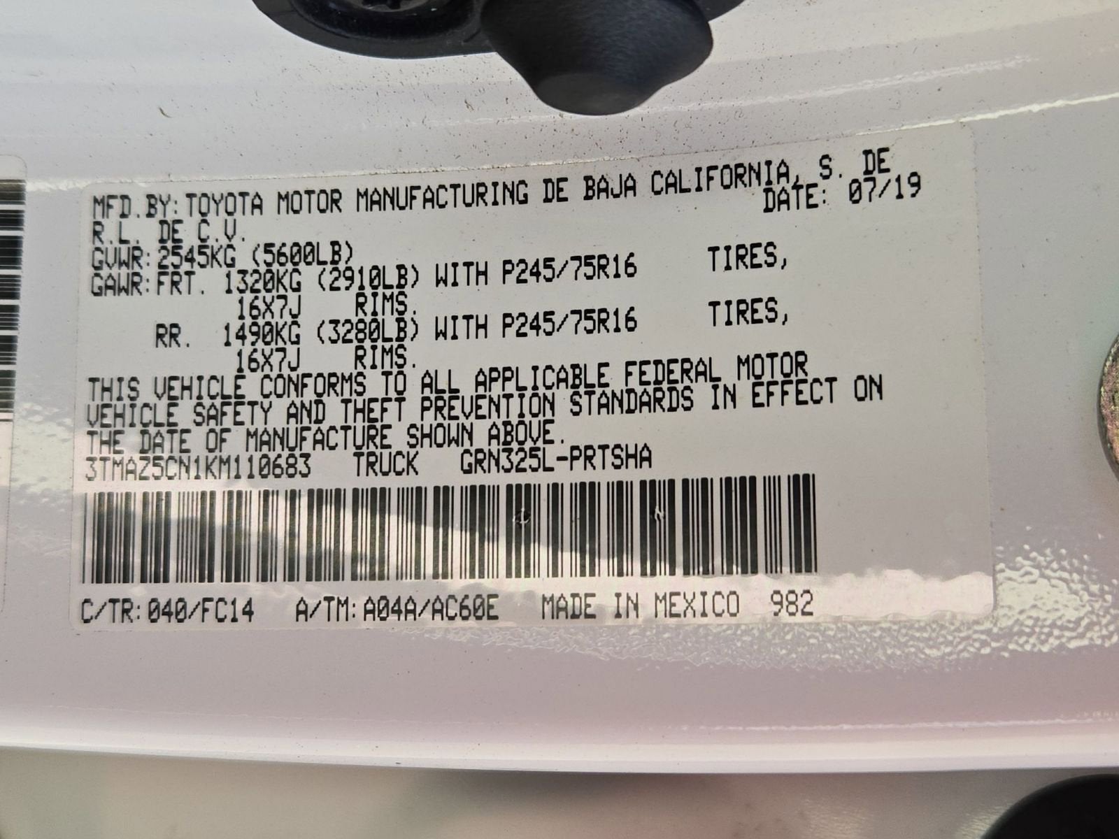 Super White 2019 Toyota Tacoma SR5 V6 RWD 6-Speed Automatic 3.5L V6 PDI DOHC 24V LEV3-ULEV70 278hp
