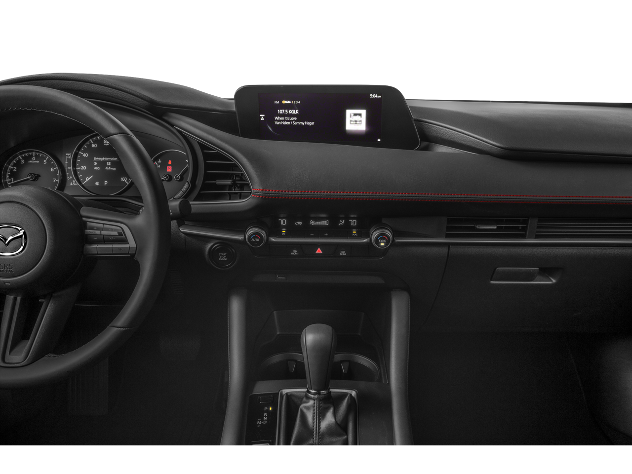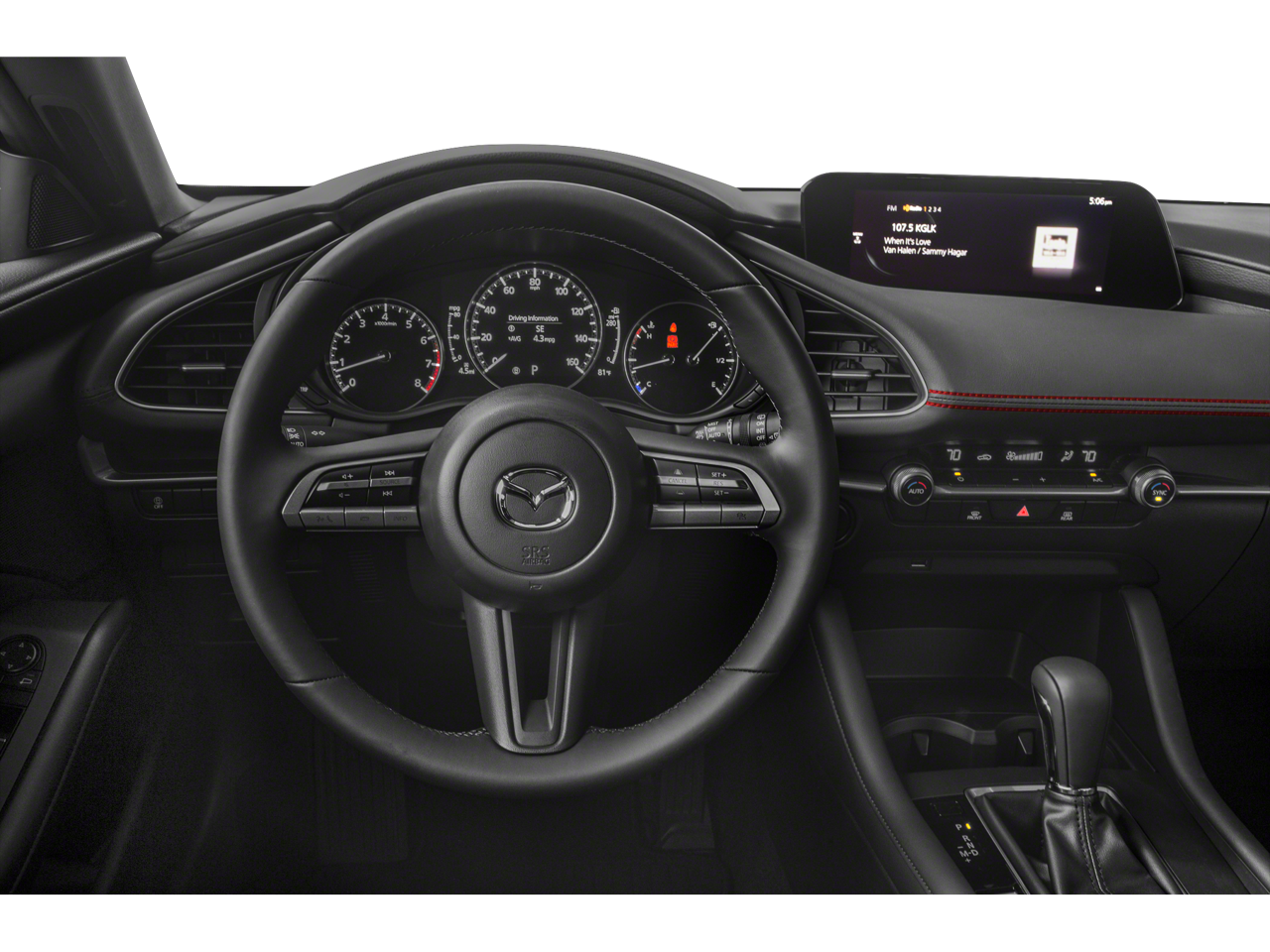 Equipped with Select Package, 4-Wheel Disc Brakes, 8 Speakers, ABS brakes, Air Conditioning, Alloy wheels, AM/FM radio, AppLink/Apple CarPlay and Android Auto, Auto High-beam Headlights, Automatic temperature control, Brake assist, Bumpers: body-color, Compass, Delay-off headlights, Driver door bin, Driver vanity mirror, Dual front impact airbags, Dual front side impact airbags, Electronic Stability Control, Emergency communication system: MAZDA CONNECT, Exterior Parking Camera Rear, Front anti-roll bar, Front Bucket Seats, Front Center Armrest, Front dual zone A/C, Front reading lights, Front Sport Seats, Front wheel independent suspension, Fully automatic headlights, Illuminated entry, Knee airbag, Leatherette Seat Trim, Low tire pressure warning, Occupant sensing airbag, Outside temperature display, Overhead airbag, Overhead console, Panic alarm, Passenger door bin, Passenger vanity mirror, Power door mirrors, Power steering, Power windows, Radio data system, Radio: AM/FM Audio System, Rain sensing wipers, Rear seat center armrest, Rear window defroster, Rear window wiper, Remote keyless entry, Speed control, Speed-sensing steering, Split folding rear seat, Spoiler, Steering wheel mounted audio controls, Tachometer, Telescoping steering wheel, Tilt steering wheel, Traction control, Trip computer, Turn signal indicator mirrors, Variably intermittent wipers, and Wheels: 18 x 7J Gray Finish Alloy.