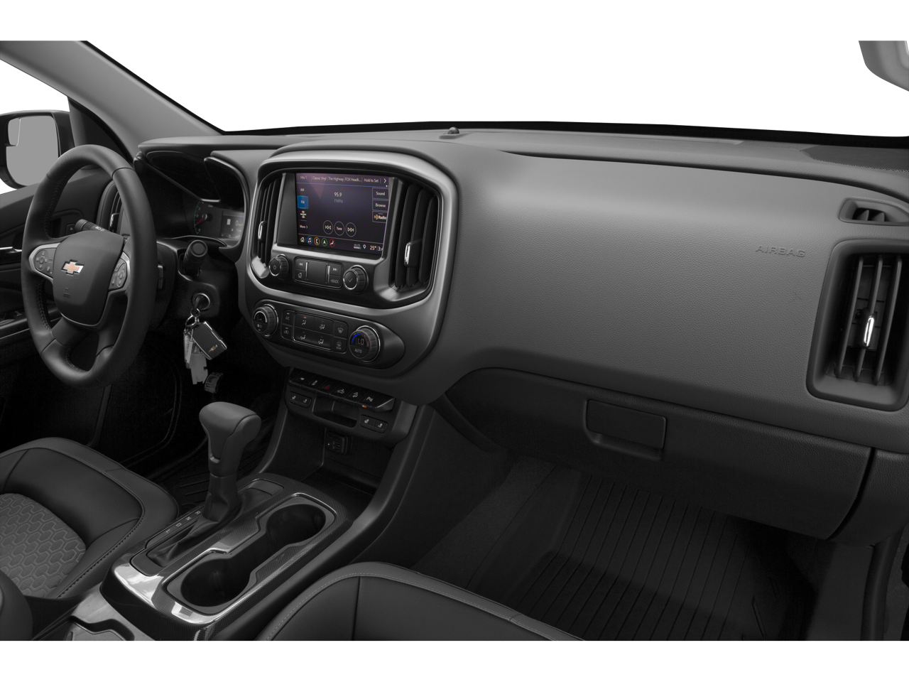 Equipped with Preferred Equipment Group 4Z7 (Hitch Guidance, Tow/Haul Mode, and UltraSonic Rear Park Assist), 4WD, 3.42 Rear Axle Ratio, 3 Round Black Off-Road Step Bars (LPO), 4-Wheel Disc Brakes, 6 Speakers, 6-Speaker Audio System Feature, ABS brakes, Air Conditioning, Alloy wheels, AM/FM radio: SiriusXM, Apple CarPlay/Android Auto, Auto-dimming Rear-View mirror, Automatic temperature control, Black Colorado Emblems (LPO), Black Tailgate CHEVROLET Lettering (LPO), Bumpers: body-color, Cloth/Leatherette Seat Trim, Compass, Delay-off headlights, Driver 6-Way Power Seat Adjuster, Driver door bin, Driver vanity mirror, Dual front impact airbags, Dual front side impact airbags, Electronic Stability Control, Exterior Parking Camera Rear, Front anti-roll bar, Front Bucket Seats, Front Center Armrest, Front fog lights, Front reading lights, Front wheel independent suspension, Fully automatic headlights, HD Radio, Heated door mirrors, Heated Driver & Front Passenger Seats, Heated front seats, Heated steering wheel, Illuminated entry, Integrated Trailer Brake Controller, Low tire pressure warning, Occupant sensing airbag, Outside temperature display, Overhead airbag, Overhead console, Panic alarm, Passenger door bin, Passenger vanity mirror, Power door mirrors, Power Driver Lumbar Control Seat Adjuster, Power driver seat, Power steering, Power windows, Premium audio system: Chevrolet Infotainment 3 Plus, Radio data system, Radio: Chevrolet Infotainment 3 Plus System, Rear reading lights, Rear seat center armrest, Rear step bumper, Rear window defroster, Remote keyless entry, Security system, SiriusXM Radio, Speed control, Speed-sensing steering, Steering wheel mounted audio controls, Tachometer, Telescoping steering wheel, Tilt steering wheel, Traction control, Trip computer, Variably intermittent wipers, and Wheels: 17 x 8 Bright Machined Aluminum.