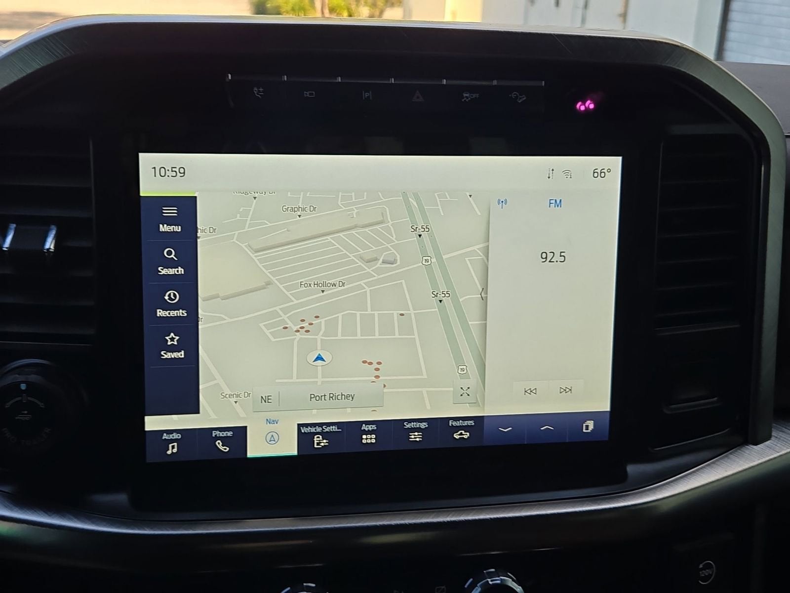 Equipped with Equipment Group 601A High (Power-Deployable Running Boards), Ford Co-Pilot360 Active 2.0 Package (Active Park Assist 2.0 and BlueCruise Hands-Free Driving), FX4 Off-Road Package (4x4 FX4 Off-Road Bodyside Decal, Hill Descent Control, Monotube Rear Shocks, Off-Road Tuned Front Shock Absorbers, Rock Crawl Mode, and Tray Style Floor Liner), King Ranch Chrome Appearance Package (Bright Belt Moldings, Chrome Door Handles w/Body-Color Strap, Chrome Skull Caps on Exterior Mirrors, and Wheels: 20 Chrome-Like PVD), King Ranch Monochromatic Paint Package (Painted Body-Color Wheellip Molding), Max Trailer Tow Package (Class IV Trailer Hitch Receiver, Extended Range 36 Gallon Fuel Tank, Integrated Trailer Brake Controller, and Pro Trailer Backup Assist), 3.5L PowerBoost Full-Hybrid V6, 4WD, 18 Machined-Aluminum Wheels, 360 Degree Camera, 4-Wheel Disc Brakes, 8 Speakers, ABS brakes, Adjustable pedals, Air Conditioning, Alloy wheels, AM/FM radio: SiriusXM with 360L, Auto High-beam Headlights, Auto tilt-away steering wheel, Auto-dimming door mirrors, Auto-dimming Rear-View mirror, Automatic temperature control, Brake assist, Compass, Delay-off headlights, Driver door bin, Driver vanity mirror, Dual front impact airbags, Dual front side impact airbags, Electronic Stability Control, Emergency communication system: SYNC 4 911 Assist, Exterior Parking Camera Rear, Front anti-roll bar, Front Bucket Seats, Front Center Armrest, Front dual zone A/C, Front fog lights, Front License Plate Bracket, Front reading lights, Front wheel independent suspension, Fully automatic headlights, Garage door transmitter, Genuine wood console insert, Genuine wood dashboard insert, Genuine wood door panel insert, Heated door mirrors, Heated front seats, Heated rear seats, Heated steering wheel, Illuminated entry, Interior Work Surface, King Ranch Leather Bucket Seats, Low tire pressure warning, Memory seat, Navigation system: Connected Navigation (90-Day Trial), Occupant sensing airbag, Outside temperature display, Overhead airbag, Overhead console, Panic alarm, Partitioned Lockable Fold-Flat Storage, Passenger door bin, Passenger vanity mirror, Pedal memory, Power door mirrors, Power driver seat, Power passenger seat, Power steering, Power windows, Pro Power Onboard - 7.2KW, Radio data system, Radio: B&O Sound System by Bang & Olufsen, Rain sensing wipers, Rear reading lights, Rear seat center armrest, Rear step bumper, Rear window defroster, Remote keyless entry, Security system, Speed control, Speed-sensing steering, Split folding rear seat, Steering wheel memory, Steering wheel mounted audio controls, SYNC 4 w/Enhanced Voice Recognition, Tachometer, Telescoping steering wheel, Tilt steering wheel, Traction control, Trip computer, Turn signal indicator mirrors, Twin Panel Moonroof, Variably intermittent wipers, Ventilated front seats, and Voltmeter.