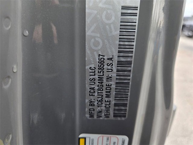 Equipped with Cold Weather Group (Heated Front Seats and Heated Steering Wheel), Quick Order Package 24R, GVWR: 6,250 lbs w/Max Tow Package, 8-Speed Automatic, 4-Wheel Disc Brakes, 4.10 Rear Axle Ratio, 8 Speakers, 97 mph Maximum Speed Calibration, ABS brakes, Air Conditioning, Alloy wheels, AM/FM radio: SiriusXM, Apple CarPlay/Android Auto, Automatic temperature control, Black 3-Piece Hard Top, Brake assist, Compass, Delay-off headlights, Driver door bin, Driver vanity mirror, Dual front impact airbags, Dual front side impact airbags, Electronic Stability Control, Freedom Panel Storage Bag, Front anti-roll bar, Front Bucket Seats, Front Center Armrest w/Storage, Front dual zone A/C, Front fog lights, Front License Plate Bracket, Front reading lights, Fully automatic headlights, Garage door transmitter, Heated door mirrors, Illuminated entry, Integrated roll-over protection, Leather steering wheel, Low tire pressure warning, MOPAR All-Weather Floor Mats (DISC), MOPAR Hardtop Headliner, MOPAR Spray In Bedliner, Occupant sensing airbag, Outside temperature display, Panic alarm, ParkView Rear Back-Up Camera, Passenger door bin, Passenger vanity mirror, Performance Suspension, Power door mirrors, Power steering, Power windows, Premium Cloth Low-Back Bucket Seats, Radio data system, Radio: Uconnect 4 w/7 Display, Rear anti-roll bar, Rear reading lights, Rear Sliding Window, Rear Window Defroster, Redical Instrument Panel Bezels, Remote keyless entry, Remote Start System, Security system, Speed control, Split folding rear seat, Steering wheel mounted audio controls, Tachometer, Telescoping steering wheel, Tilt steering wheel, Traction control, Trip computer, Variably intermittent wipers, Voltmeter, and Wheels: 17 x 7.5 Granite Crystal Aluminum.