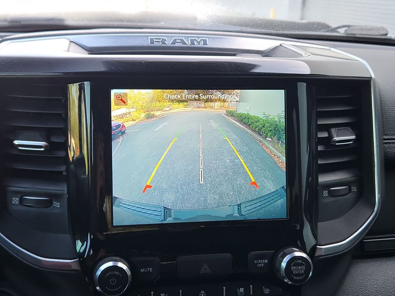 Equipped with Laramie Level B Equipment Group (DISC) (4G LTE Wi-Fi Hot Spot, 8.4 Touchscreen Display, All R1 High Radios, All Radio Equipped Vehicles, Apple CarPlay, Auto High Beam Headlamp Control, Connected Travel & Traffic Services, Connectivity - US/Canada, Disassociated Touchscreen Display, Foam Bottle Insert (Door Trim Panel), For Details, Visit DriveUconnect.com, For More Info, Call 800-643-2112, Global Telematics Box Module (TBM), Google Android Auto, GPS Antenna Input, GPS Navigation, harman/kardon 19 Speaker Premium Sound, HD Radio, Heated Second Row Seats, Integrated Center Stack Radio, Integrated Voice Command w/Bluetooth®, ParkSense Front/Rear Park Assist w/Stop, Radio: Uconnect 5 Nav w/8.4 Display, Rain Sensitive Windshield Wipers, Rear 60/40 Folding Split Recline Seat, Remote Tailgate Release, SiriusXM Radio Service, SiriusXM w/360L, and USB Host Flip), Night Edition (#1 Seat Foam Cushion, 3 Rear Seat Head Restraints, 4 Way Front Headrests, Accent Color Premium Power Mirrors, Auto-Dimming Exterior Driver Mirror, Black Exterior Truck Badging, Black Headlamp Bezels, Black Interior Accents, Black Painted Exterior Mirrors Caps, Body Color Door Handles, Body Color Front Bumper, Body Color Rear Bumper w/Step Pads, Bucket Seats, Convex Wide-Angle Mirror Insert, Delete LED Lamp - Floor Console Bin, Driver Seat Memory, Dual Exhaust w/Black Tips, Exterior Mirrors Courtesy Lamps, Exterior Mirrors w/Heating Element, Exterior Mirrors w/Memory, Exterior Mirrors w/Supplemental Signals, Front Seat Back Map Pockets, Full Length Upgraded Floor Console, Grille Surround 3 Black Texture 2 Black, Heated Front Seats, Heated Steering Wheel, Leather Trimmed Bucket Seats, Mopar Black Tubular Side Steps, Power 2-Way Driver Lumbar Adjust, Power 2-Way Passenger Lumbar Adjust, Power 8-Way Driver & Passenger Seats, Power-Folding Mirrors, Rear 60/40 Folding Seat, Sport Performance Hood, Twill Film Appliques, and Ventilated Front Seats), Quick Order Package 28H Laramie, 10 Speakers, 2nd Row In Floor Storage Bins, 3.21 Rear Axle Ratio, 4-Wheel Disc Brakes, 48V Belt Starter Generator, ABS brakes, Adjustable pedals, Air Conditioning, Alloy wheels, AM/FM radio: SiriusXM, Anti-Spin Differential Rear Axle, Apple CarPlay/Android Auto, Audio memory, Auto-dimming door mirrors, Auto-dimming Rear-View mirror, Automatic temperature control, Brake assist, Bumpers: chrome, Chrome Exterior Mirrors, Compass, Delay-off headlights, Driver door bin, Driver vanity mirror, Dual front impact airbags, Dual front side impact airbags, Electronic Stability Control, Front anti-roll bar, Front Center Armrest w/Storage, Front dual zone A/C, Front fog lights, Front License Plate Bracket, Front reading lights, Front wheel independent suspension, Fully automatic headlights, Garage door transmitter, Heated door mirrors, Heated front seats, Heated steering wheel, Illuminated entry, Leather steering wheel, Leather Trim 40/20/40 Bench Seat, Low tire pressure warning, Memory seat, MOPAR Front & Rear Rubber Floor Mats, Occupant sensing airbag, Outside temperature display, Overhead airbag, Overhead console, Panic alarm, ParkView Rear Back-Up Camera, Passenger door bin, Passenger vanity mirror, Pedal memory, Power door mirrors, Power driver seat, Power passenger seat, Power steering, Power windows, Radio data system, Radio: Uconnect 5 W w/8.4 Display, Rear anti-roll bar, Rear seat center armrest, Rear step bumper, Rear Underseat Compartment Storage (DISC), Rear window defroster, Remote keyless entry, Security system, Speed control, Split folding rear seat, Steering wheel mounted audio controls, Tachometer, Telescoping steering wheel, Tilt steering wheel, Traction control, Trailer Brake Control, Trip computer, Turn signal indicator mirrors, Variably intermittent wipers, Ventilated front seats, Voltmeter, Wheels: 18 x 8 Aluminum Base Painted, and Wh