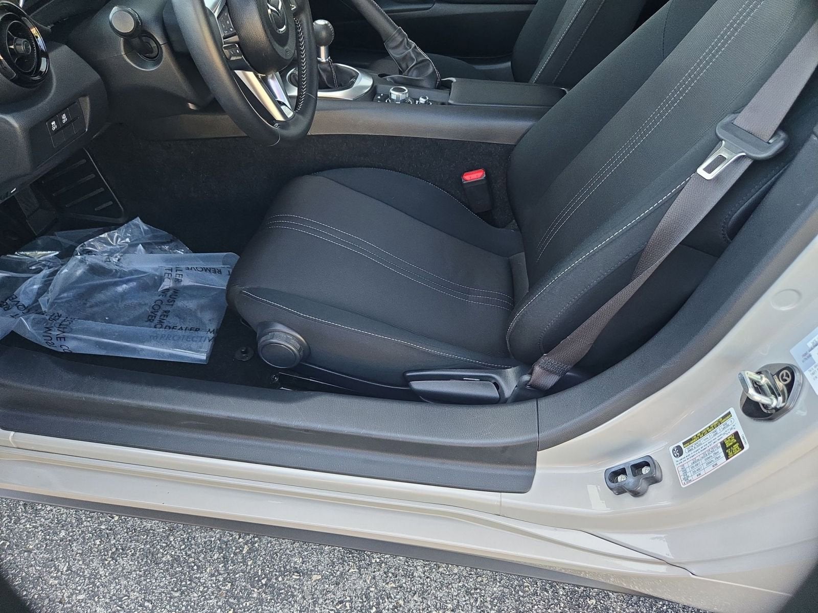 Equipped with 4-Wheel Disc Brakes, 9 Speakers, ABS brakes, Air Conditioning, Alloy wheels, AM/FM radio: SiriusXM, AppLink/Apple CarPlay and Android Auto, Brake assist, Bumpers: body-color, Cargo Net, Cloth Upholstery w/Light Gray Stitching, Convertible roof wind blocker, Driver vanity mirror, Dual front impact airbags, Dual front side impact airbags, Electronic Stability Control, Emergency communication system: MAZDA CONNECT, Exterior Parking Camera Rear, First Aid Kit, Four wheel independent suspension, Front anti-roll bar, Front Bucket Seats, Front Center Armrest, Glass rear window, Heated Front Bucket Seats, Heated front seats, Illuminated entry, Leather Shift Knob, Low tire pressure warning, MAZDA CONNECT, Occupant sensing airbag, Outside temperature display, Panic alarm, Passenger vanity mirror, Power door mirrors, Power steering, Power windows, Radio data system, Radio: Bose Audio System w/AudioPilot, Rear anti-roll bar, Rear window defroster, Remote keyless entry, Roadside Assistance Kit, Speed control, Speed-sensing steering, Spoiler, Sport steering wheel, Steering wheel mounted audio controls, Tachometer, Telescoping steering wheel, Tilt steering wheel, Traction control, Trip computer, Variably intermittent wipers, Wheel Locks, and Wheels: 17 x 7 Metallic Black Aluminum Alloy.