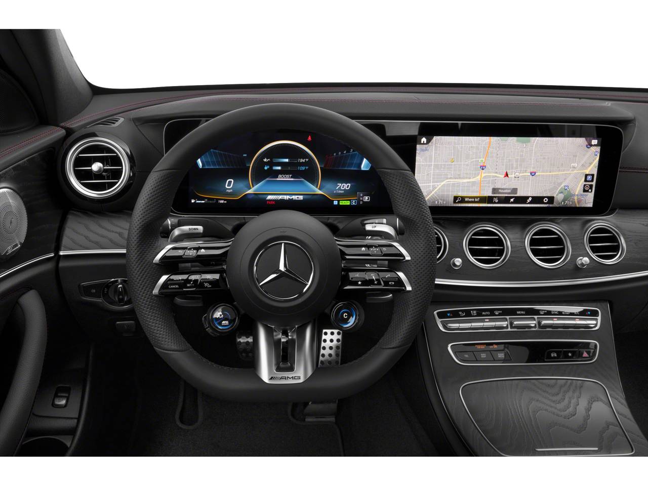 Equipped with Advanced Lighting Package (LED Intelligent Light System), Driver Assistance Package (Active Brake Assist w/Cross-Traffic Function, Active Distance Assist DISTRONIC®, Active Lane Change Assist, Active Speed Limit Assist, Active Steering Assist, Extended Restart by Stop & Go, PRE-SAFE® Impulse Side, PRE-SAFE® PLUS Rear End Collision Protection, and Route Based Speed Adaptation), Sun Protection Package (Power Rear Window Sunshade and Rear Window Manual Roller Blinds), Warmth & Comfort Package (Heated Armrests and Rapid Heating Functionality for Front Seats), 13 Speakers, 4-Wheel Disc Brakes, ABS brakes, Active Multicontour Front Seats w/Massage Feature, Adaptive suspension, Air Conditioning, Alloy wheels, AM/FM radio: SiriusXM, AMG® LED Crest Logo Projectors, AMG® Performance Exhaust System, AMG® Performance Steering Wheel in Nappa/Microfiber, AMG® Track Pace Application, Anti-whiplash front head restraints, Apple CarPlay®/Android Auto®, Augmented Video, Auto High-beam Headlights, Auto tilt-away steering wheel, Auto-dimming door mirrors, Auto-dimming Rear-View mirror, Auto-leveling suspension, Automatic temperature control, Black Seatbelts, Brake assist, Bumpers: body-color, Carbon Fiber Center Console, Delay-off headlights, Driver door bin, Driver vanity mirror, Dual front impact airbags, Dual front side impact airbags, Electronic Stability Control, Emergency communication system: eCall Emergency System, Exterior Parking Camera Rear, Four wheel independent suspension, Front anti-roll bar, Front Bucket Seats, Front Center Armrest, Front dual zone A/C, Front reading lights, Fully automatic headlights, Garage door transmitter: HomeLink, Genuine wood console insert, Genuine wood dashboard insert, Genuine wood door panel insert, Head restraints memory, Heated & Ventilated Front Seats, Heated door mirrors, Heated Front Seats, Heated front seats, Heated steering wheel, Illuminated entry, Knee airbag, Leather Shift Knob, Low tire pressure warning, Memory seat, Nappa Leather Upholstery, Navigation System, Occupant sensing airbag, Outside temperature display, Overhead airbag, Overhead console, Panic alarm, Panorama Roof, Passenger door bin, Passenger vanity mirror, Power adjustable front head restraints, Power adjustable rear head restraints, Power door mirrors, Power driver seat, Power Front Seats w/3-Position Memory, Power moonroof, Power passenger seat, Power steering, Power windows, Premium audio system: MBUX, Radio data system, Radio: MBUX Infotainment & Navigation System, Rain sensing wipers, Rear anti-roll bar, Rear fog lights, Rear reading lights, Rear seat center armrest, Rear window defroster, Remote keyless entry, Security system, Speed control, Speed-sensing steering, Split folding rear seat, Spoiler, Sport steering wheel, Steering wheel memory, Steering wheel mounted audio controls, Tachometer, Telescoping steering wheel, Tilt steering wheel, Traction control, Trip computer, Turn signal indicator mirrors, Variably intermittent wipers, Weather ban