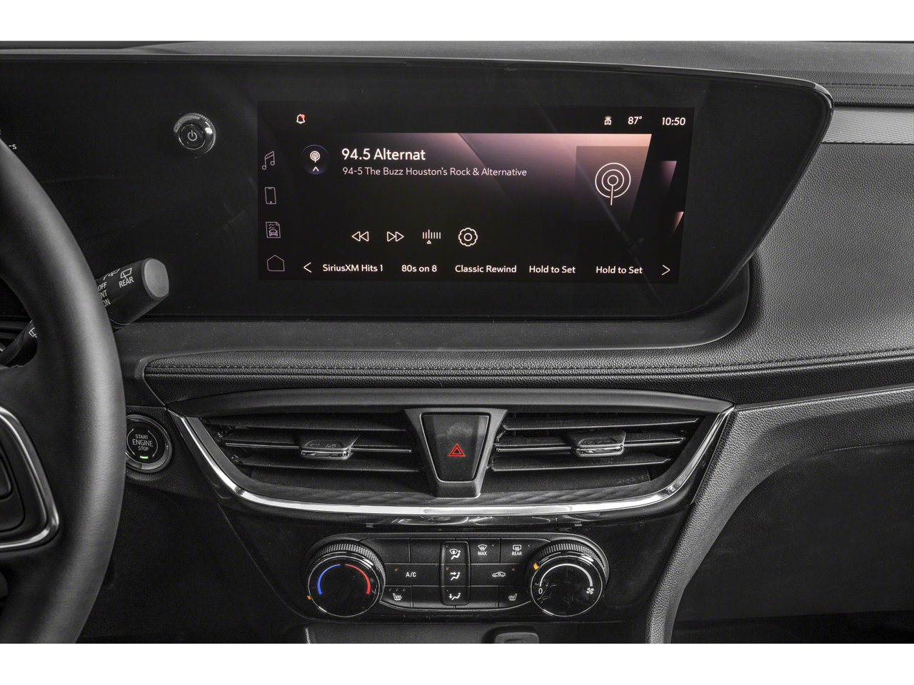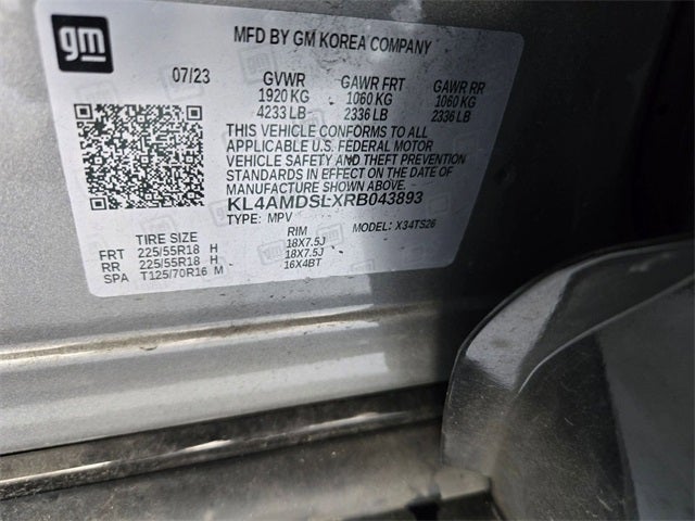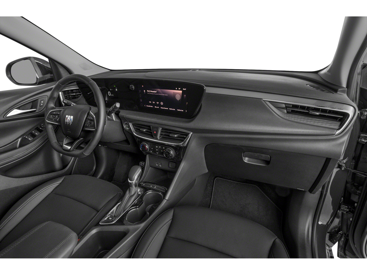 Equipped with Black Roof Package (Black Exterior Mirror Caps, Black Roof Panel, and Black Roof Rails), Comfort Package (2-Way Power Driver Lumbar Control, 8-Way Power Driver Seat Adjuster, Flat-Folding Front Passenger Seatback, Heated Driver & Front Passenger Seats, Heated Steering Wheel, Rear Center Armrest, and Remote Vehicle Starter System), Preferred Equipment Group 1SD, 2 USB Ports (1 Type-A, 1 Type-C), 4-Way Manual Passenger Seat Adjuster, 4-Wheel Disc Brakes, 5.45 Final Drive Axle Ratio, 6 Speakers, 6-Way Manual Driver Seat Adjuster, ABS brakes, Air Conditioning, Alloy wheels, AM/FM radio: SiriusXM, Auto High-beam Headlights, Automatic temperature control, Brake assist, Bumpers: body-color, Compass, Delay-off headlights, Driver door bin, Driver vanity mirror, Dual front impact airbags, Dual front side impact airbags, Electronic Stability Control, Emergency communication system: OnStar and Buick connected services capable, Enhanced Performance 6-Speaker System, Front anti-roll bar, Front Bucket Seats, Front Center Armrest, Front reading lights, Front wheel independent suspension, Fully automatic headlights, Heated door mirrors, Illuminated entry, Knee airbag, Leatherette Seat Trim, Low tire pressure warning, Occupant sensing airbag, Outside temperature display, Overhead airbag, Overhead console, Panic alarm, Passenger door bin, Passenger vanity mirror, Power door mirrors, Power Liftgate, Power steering, Power windows, Radio data system, Radio: Audio System w/AM/FM, Rear reading lights, Rear side impact airbag, Rear window defroster, Rear window wiper, Remote keyless entry, Ride & Handling Suspension, Security system, SiriusXM, Speed control, Speed-sensing steering, Split folding rear seat, Spoiler, Sport steering wheel, Steering wheel mounted audio controls, Tachometer, Telescoping steering wheel, Tilt steering wheel, Traction control, Trip computer, Variably intermittent wipers, Wheels: 18 Gloss Black Aluminum, and Wireless Apple CarPlay/Wireless Android Auto.