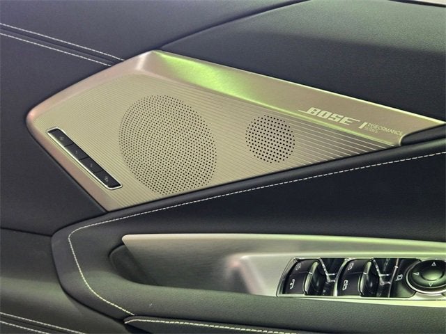 Equipped with Memory Driver & Passenger Convenience Package, Preferred Equipment Group 2LT (2 Cargo Nets, Bose Performance Series Sound System w/14 Speakers, Driver Power Bolster Seat Adjuster, Electrical Theft Deterrent System, HD Front & Rear Vision Cameras, Head-Up Display, Heated & Vented Driver & Passenger Seats, Heated Steering Wheel, Passenger Power Bolster Seat Adjuster, Performance Data & Video Recorder, Power Driver Lumbar Control Seat Adjuster, Power Passenger Lumbar Control Seat Adjuster, Power-Adjustable Outside Heated Mirrors, Rear Cross Traffic Alert, Side Blind Zone Alert, Universal Home Remote, Vehicle Inclination Theft Deterrent Sensor, Vehicle Interior Movement Theft Deterrent Sensor, and Wireless Charging for Devices), 14 Speakers, 4-Wheel Disc Brakes, 8-Way Power Driver Seat Adjuster, 8-Way Power Passenger Seat Adjuster, ABS brakes, Air Conditioning, Alloy wheels, AM/FM radio: SiriusXM, Auto High-beam Headlights, Auto-dimming door mirrors, Auto-dimming Rear-View mirror, Automatic Leveling System Headlamp Control, Automatic temperature control, Black Composite Rocker Extensions (LPO), Black Exhaust Tips, Black Lug Nuts (LPO), Black Wheel Locks (LPO), Brake assist, Bright Red-Painted Calipers, Bumpers: body-color, Carbon Flash Metallic Fender Hash Stripes (LPO), Carbon Flash/Edge Red Stinger Stripe, Compass, Convertible HardTop, Convertible roof lining, Dark Stealth Front Crossed Flags Emblem (LPO), Delay-off headlights, Driver door bin, Driver vanity mirror, Dual front impact airbags, Dual front side impact airbags, Electronic Stability Control, Emergency communication system: OnStar and Chevrolet connected services capable, Exterior Parking Camera Rear, Four wheel independent suspension, Front anti-roll bar, Front Bucket Seats, Front Center Armrest, Front dual zone A/C, Front Lift Adjustable Height w/Memory, Front reading lights, Fully automatic headlights, Garage door transmitter, Glass rear window, GT1 Bucket Seats, Heads-Up Display, Heated door mirrors, Heated front seats, Heated steering wheel, Illuminated entry, Integrated roll-over protection, Lane Departure Warning System, Leather Shift Knob, Leather steering wheel, Low tire pressure warning, Memory seat, Mulan Lthr Seating Surfaces w/Perforated Inserts, Navigation System, Occupant sensing airbag, Outside temperature display, Overhead console, Panic alarm, Passenger door bin, Passenger vanity mirror, Performance Exhaust w/Stainless-Steel Tips, Power convertible roof, Power door mirrors, Power driver seat, Power passenger seat, Power steering, Power windows, Premium audio system: Chevrolet Infotainment 3 Premium, Radio data system, Radio: Chevrolet Infotainment 3 Premium System, Rear anti-roll bar, Rear window defroster, Remote keyless entry, Security system, Speed control, Speed-sensing steering, Sport steering wheel, Steering wheel memory, Steering wheel mounted audio controls, Tachometer, Telescoping steering wheel, Tilt steering wheel, Torch Red Seat Belt Color, Traction control, Trip computer, Turn signal indicator mirrors, Variably intermittent wipers, Ventilated front seats, Voltmeter, Wheels: 19 x 8.5 Fr/20 x 11 Rr Bright Silver, and Wheels: 19 x 8.5 Fr/20 x 11 Rr Midnight Gray.