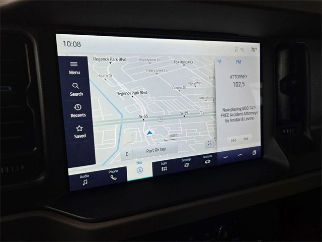 Equipped with Equipment Group 354A High/Lux Package (10 Speakers w/Subwoofer, 360-Degree Camera, Adaptive Cruise Control, Additional Sound Deadening, Evasive Steering Assist, Front Parking Sensors, Heated Steering Wheel, Information on Demand Panel, Radio: B&O Sound System by Bang & Olufsen, Sideview Mirrors, Universal Garage Door Opener, and Wireless Charging Pad), 4WD, 4-Wheel Disc Brakes, 4.7 Axle Ratio, 7 Speakers, ABS brakes, Air Conditioning, Alloy wheels, AM/FM radio: SiriusXM with 360L, AM/FM Stereo, Auto High-beam Headlights, Auto-dimming Rear-View mirror, Automatic temperature control, Brake assist, Brush Guard, Carbonized Gray Molded-In-Color Hard Top, Compass, Connected Navigation, Delay-off headlights, Driver door bin, Driver vanity mirror, Dual front impact airbags, Dual front side impact airbags, Electronic Stability Control, Emergency communication system: 911 Assist, Exterior Parking Camera Rear, Front & Rear Floor Liners, Front anti-roll bar, Front Bucket Seats, Front Center Armrest, Front dual zone A/C, Front fog lights, Front reading lights, Front Row Top Panels & Door Storage Bags, Front Row Top Panels Storage Bag, Front wheel independent suspension, Fully automatic headlights, Hard Top Sound Deadening Headliner, Heated door mirrors, Heated front seats, Heated Leather-Trimmed/Vinyl Bucket Seats, Illuminated entry, Integrated roll-over protection, Leather Shift Knob, Low tire pressure warning, Navigation system: Connected Navigation, Occupant sensing airbag, Outside temperature display, Overhead airbag, Overhead console, Panic alarm, Passenger door bin, Passenger vanity mirror, Power door mirrors, Power steering, Power windows, Radio data system, Rear-Window Defroster & Washer, Remote keyless entry, Removable Hoop Step, Security system, SiriusXM Radio w/360L, Slide-Out Tailgate, Speed control, Split folding rear seat, Steering wheel mounted audio controls, SYNC 4, Tachometer, Telescoping steering wheel, Tilt steering wheel, Traction control, Trip computer, Variably intermittent wipers, Voltmeter, Wheel Lock Kit (DIO), and Wheels: 17 Black High Gloss-Painted Aluminum.