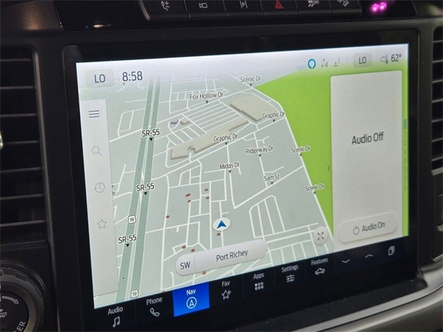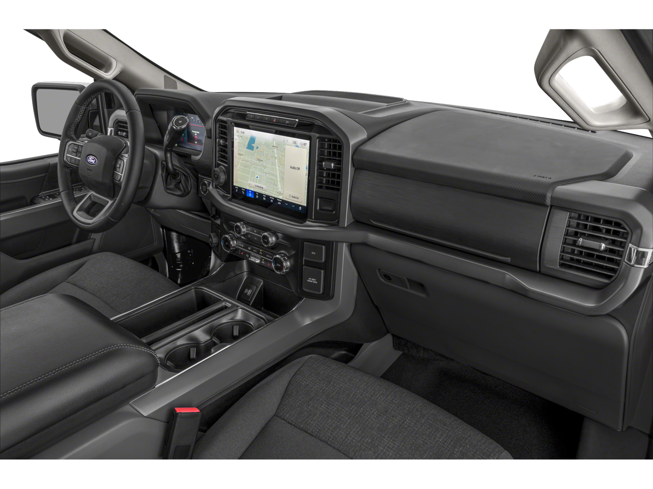 Equipped with Bed Utility Package (4 Pickup Box Tie-Down Plates, LED Box Lighting, and Tailgate Step w/Tailgate Work Surface), Equipment Group 302A Mid (400W Cab & Bed Outlets, Adaptive Cruise Control w/Stop & Go, Auto-Dimming Rear-View Mirror, Cloth 40/Console/40 Front Seats, Ford BlueCruise Equipped (90-Day Trial), Heated Front Seats, Intelligent Access w/Push Button Start, Power Glass Heated Sideview Mirrors, Power-Sliding Rear Window, Remote Start System w/Remote Tailgate Release, and Speed Sign Recognition), FX4 Off-Road Package (4x4 FX4 Off-Road Bodyside Decal, Hill Descent Control, Monotube Rear Shocks, Off-Road Tuned Front Shock Absorbers, Rock Crawl Mode, and Tray Style Floor Liner), Mobile Office Package (Console Worksurface and Partitioned Lockable Rear Storage), Tow/Haul Package (Integrated Trailer Brake Controller), 3.5L PowerBoost Full-Hybrid V6, 4WD, 4-Wheel Disc Brakes, 6 Speakers, ABS brakes, Air Conditioning, Alloy wheels, AM/FM radio: SiriusXM with 360L, Auto High-beam Headlights, Auto-dimming Rear-View mirror, Automatic temperature control, Brake assist, Bumpers: chrome, Chrome wheels, Cloth 40/20/40 Front Seat, Compass, Delay-off headlights, Driver door bin, Driver vanity mirror, Dual front impact airbags, Dual front side impact airbags, Electronic Stability Control, Emergency communication system: SYNC 4 911 Assist, Exposed Wheel Lock Kit, Front anti-roll bar, Front Center Armrest w/Storage, Front dual zone A/C, Front fog lights, Front reading lights, Front wheel independent suspension, Fully automatic headlights, Heated door mirrors, Illuminated entry, LED Sideview Mirror Spotlights, Low tire pressure warning, Navigation system: Connected Navigation, Occupant sensing airbag, Outside temperature display, Overhead airbag, Overhead console, Panic alarm, Passenger door bin, Passenger vanity mirror, Power door mirrors, Power driver seat, Power steering, Power windows, Pro Power Onboard - 7.2KW, Radio data system, Radio: AM/FM SiriusXM w/360L, Rear reading lights, Rear step bumper, Rear window defroster, Remote keyless entry, Security system, Speed control, Split folding rear seat, Steering wheel mounted audio controls, SYNC 4 w/Enhanced Voice Recognition, Tachometer, Telescoping steering wheel, Tilt steering wheel, Tough Bed Spray-In Bedliner, Traction control, Trip computer, Variably intermittent wipers, Voltmeter, and Wheels: 18 Chrome-Like PVD.