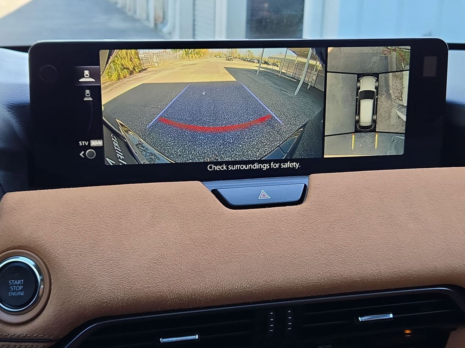 Equipped with 12 Speakers, 3.692 Axle Ratio, 3rd row seats: bench, 4-Wheel Disc Brakes, ABS brakes, Air Conditioning, Alloy wheels, AM/FM radio: SiriusXM, Auto High-beam Headlights, Auto-dimming door mirrors, Auto-dimming Rear-View mirror, Automatic temperature control, Brake assist, Bumpers: body-color, Cargo Net, Compass, Crossbars in Silver, Delay-off headlights, Digital Rear View Mirror w/HomeLink, Driver door bin, Driver vanity mirror, Dual front impact airbags, Dual front side impact airbags, E911 Automatic Emergency Notification, Electronic Stability Control, Emergency communication system: MAZDA CONNECT, Four wheel independent suspension, Front anti-roll bar, Front Bucket Seats, Front Center Armrest w/Storage, Front dual zone A/C, Front reading lights, Fully automatic headlights, Garage door transmitter: HomeLink, Heads-Up Display, Heated door mirrors, Heated front seats, Heated rear seats, Heated steering wheel, Heated/Ventilated Front Bucket Seats, Illuminated entry, Infotainment System Voice Command, Knee airbag, Leather Shift Knob, Leather steering wheel, Low tire pressure warning, Mazda Connected Services, Mazda Navigation System, Memory seat, Nappa Leather Seat Trim w/Quilting, Navigation system: MAZDA CONNECT, Occupant sensing airbag, Outside temperature display, Overhead airbag, Overhead console, Pandora Internet Radio Integration, Panic alarm, Passenger door bin, Passenger vanity mirror, Power door mirrors, Power driver seat, Power Liftgate, Power moonroof, Power passenger seat, Power steering, Power windows, Radio Broadcast Data System Program Information, Radio data system, Radio: AM/FM w/Bose Audio Sound System, Rain sensing wipers, Rear air conditioning, Rear anti-roll bar, Rear reading lights, Rear seat center armrest, Rear window defroster, Rear window wiper, Remote keyless entry, Security system, SMS Text Msg Audio Delivery & Reply, Spectrum (Paint Protection Film), Speed control, Speed-sensing steering, Split folding rear seat, Spoiler, Steering wheel memory, Steering wheel mounted audio controls, Tachometer, Telescoping steering wheel, Tilt steering wheel, Traction control, Trip computer, Turn signal indicator mirrors, Variably intermittent wipers, Ventilated front seats, Ventilated rear seats, and Wheels: 21 x 9.5J Aluminum Alloy.