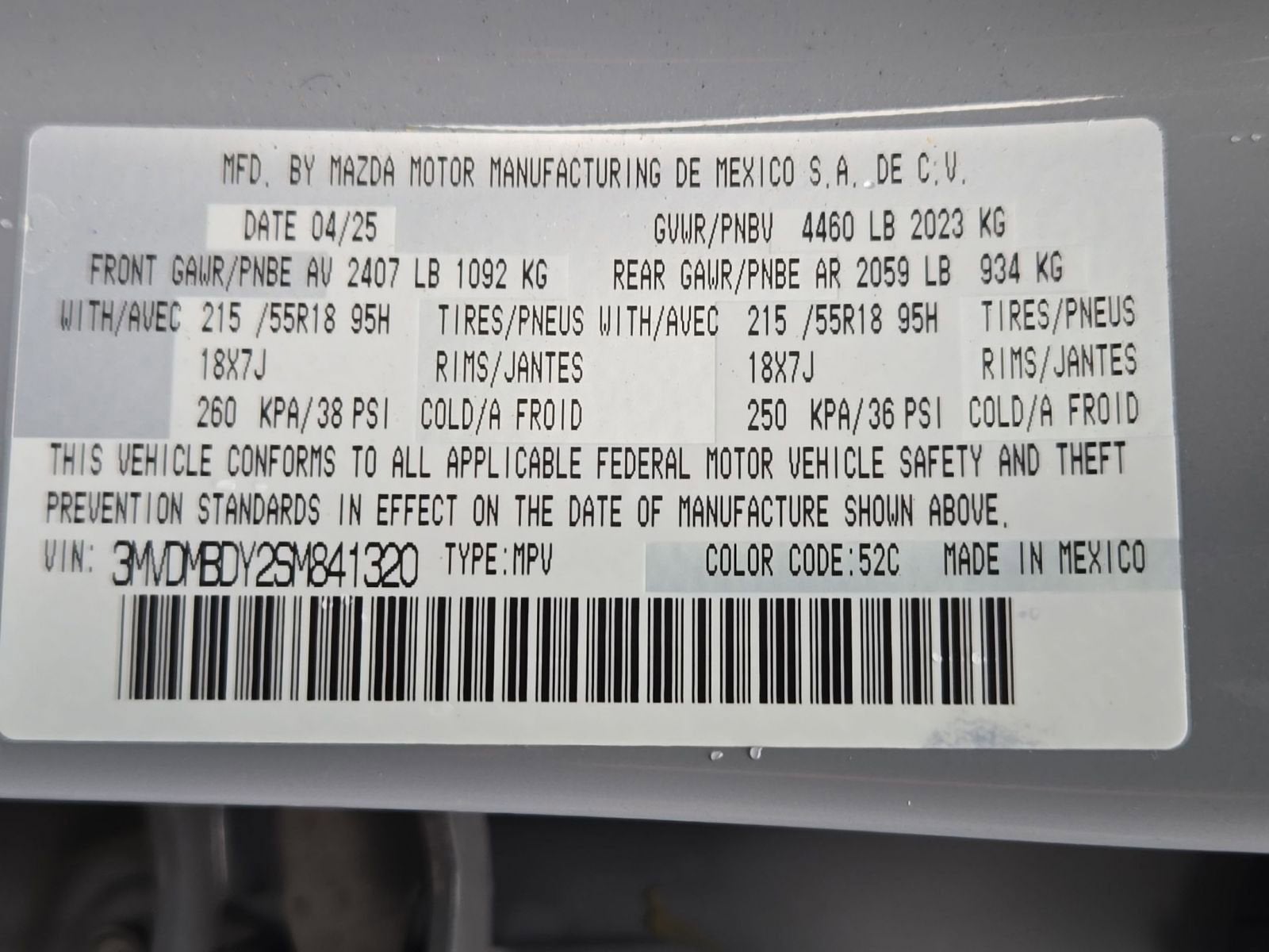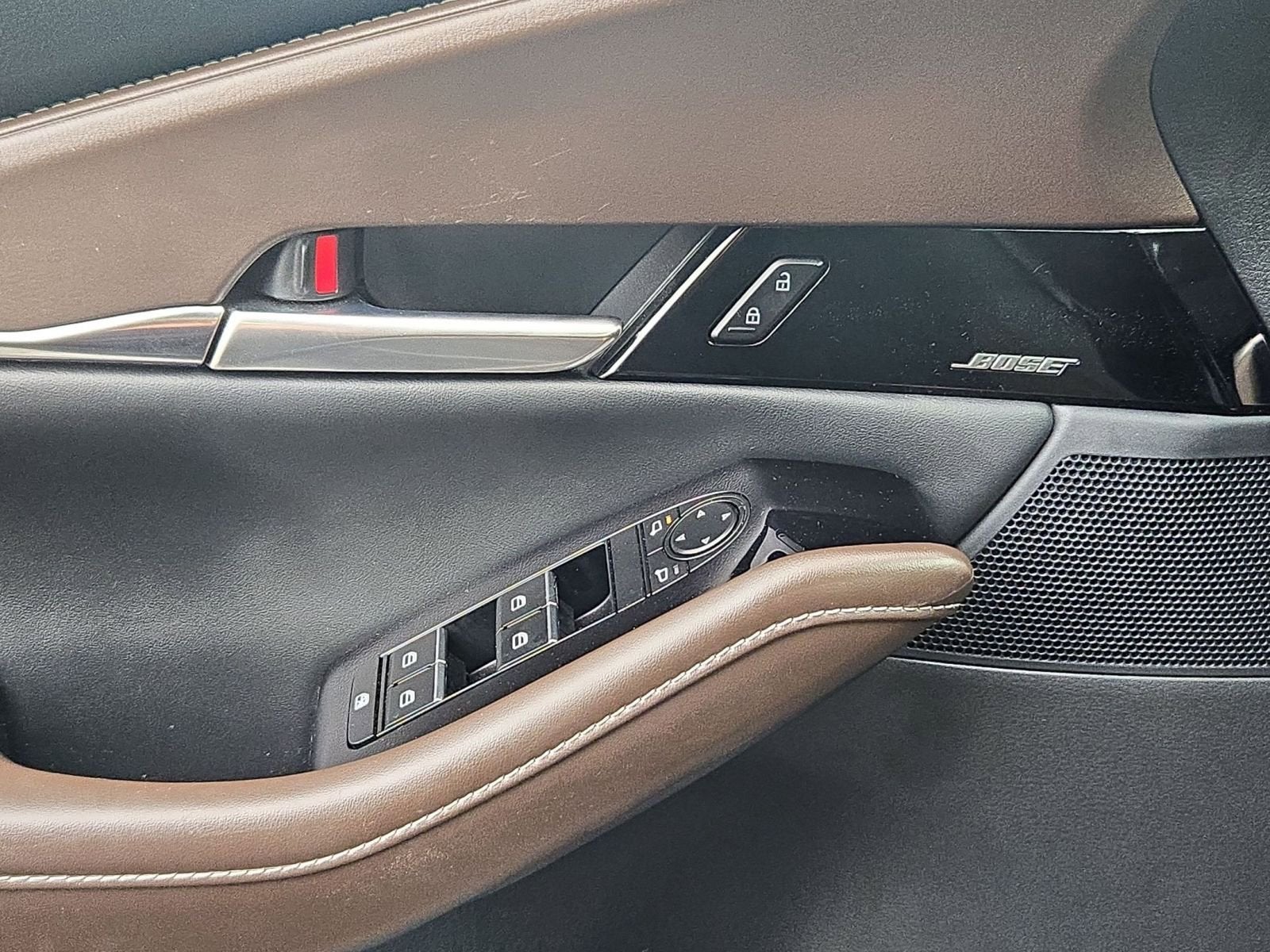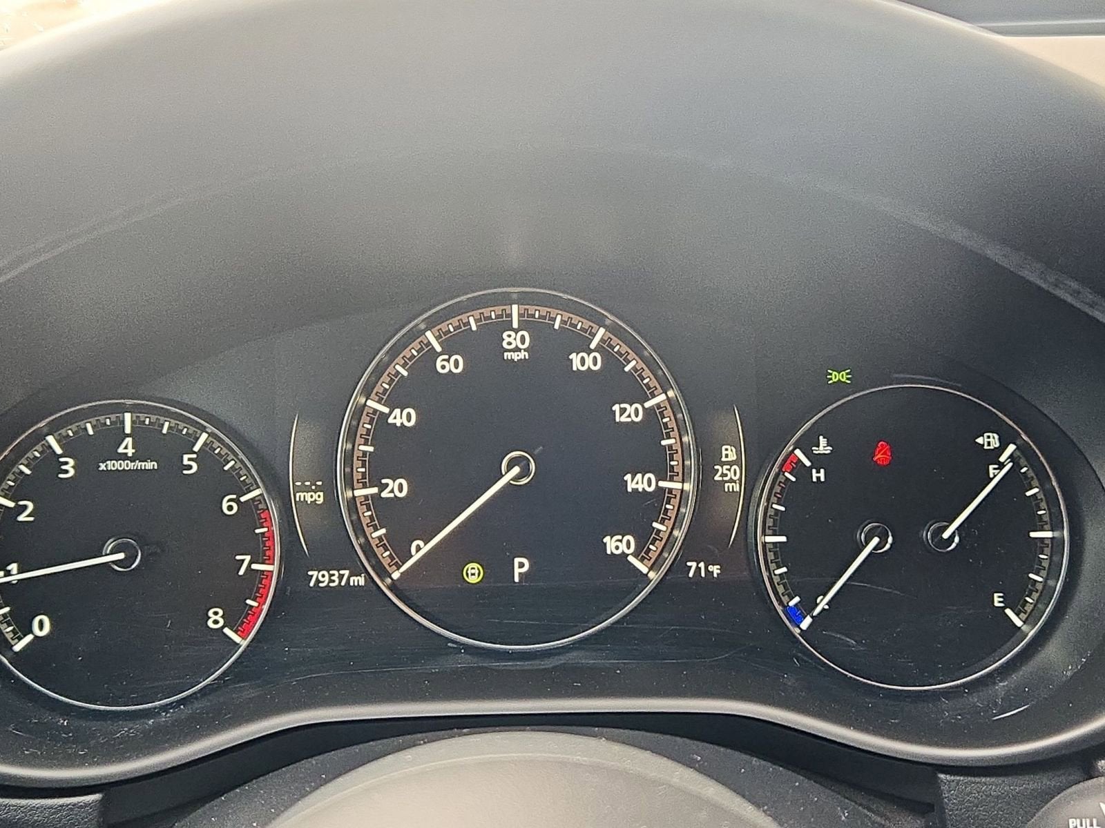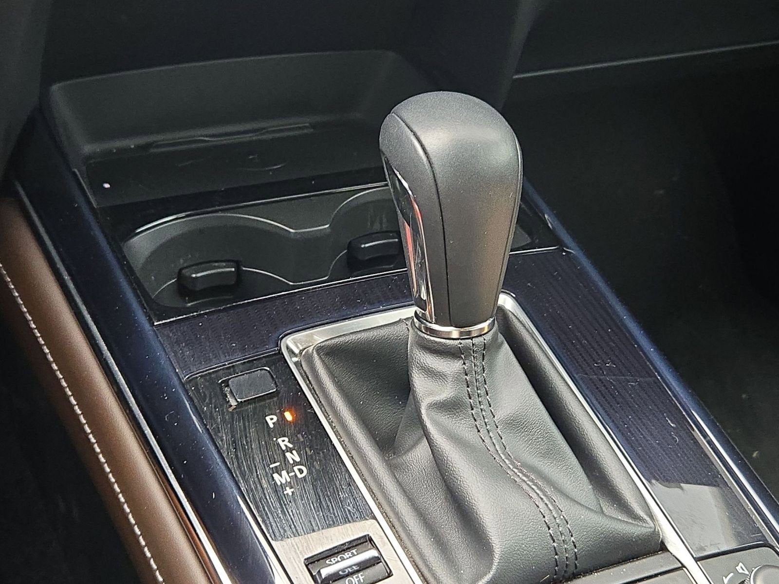 Equipped with 12 Speakers, 4-Wheel Disc Brakes, ABS brakes, Aero Gray Paint Charge, Air Conditioning, Alloy wheels, AM/FM radio: SiriusXM, AppLink/Apple CarPlay and Android Auto, Auto High-beam Headlights, Auto-dimming Rear-View mirror, Automatic temperature control, Black Lug Nuts & Black Wheel Locks, Brake assist, Bumpers: body-color, Cargo Cover, Cargo Net, Cargo Tray, Compass, Delay-off headlights, Driver door bin, Driver vanity mirror, Dual front impact airbags, Dual front side impact airbags, Electronic Stability Control, Emergency communication system: Mazda Connected Services (3-year trial subscription included), Exterior Parking Camera Rear, Front anti-roll bar, Front Bucket Seats, Front Center Armrest, Front dual zone A/C, Front reading lights, Front wheel independent suspension, Fully automatic headlights, Heads-Up Display, Heated door mirrors, Heated Front Bucket Seats, Heated front seats, Heated steering wheel, Illuminated entry, Knee airbag, Leather Seat Trim, Leather Shift Knob, Leather steering wheel, Low tire pressure warning, MAZDA CONNECT Infotainment System, Memory seat, Navigation system: MAZDA CONNECT, Occupant sensing airbag, Outside temperature display, Overhead airbag, Overhead console, Panic alarm, Passenger door bin, Passenger vanity mirror, Power door mirrors, Power driver seat, Power Liftgate, Power moonroof, Power steering, Power windows, Radio data system, Radio: AM/FM/HD Audio w/Mazda Online Navigation, Rain sensing wipers, Rear seat center armrest, Rear side impact airbag, Rear window defroster, Rear window wiper, Remote keyless entry, Speed control, Speed-sensing steering, Split folding rear seat, Spoiler, Steering wheel mounted audio controls, Tachometer, Telescoping steering wheel, Tilt steering wheel, Traction control, Trip computer, Turn signal indicator mirrors, Variably intermittent wipers, and Wheels: 18 x 7J Aluminum Alloy.