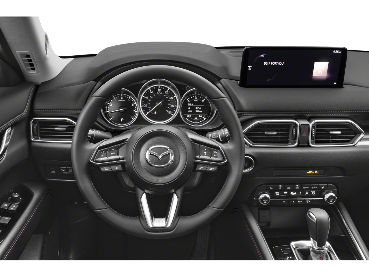 Equipped with Mazda Certified Pre-Owned Certified, 10 Speakers, 4-Wheel Disc Brakes, ABS brakes, Air Conditioning, All-Weather Floor Mats, Alloy wheels, AM/FM radio, AppLink/Apple CarPlay and Android Auto, Auto High-beam Headlights, Auto-dimming Rear-View mirror, Automatic temperature control, Black Lug Nuts & Black Wheel Locks, Brake assist, Bumpers: body-color, Cargo Tray, Delay-off headlights, Driver door bin, Driver vanity mirror, Dual front impact airbags, Dual front side impact airbags, E911 Automatic Emergency Notification, Electronic Stability Control, Emergency communication system: MAZDA CONNECT, Exterior Parking Camera Rear, First Aid Kit, Four wheel independent suspension, Front anti-roll bar, Front Bucket Seats, Front Center Armrest w/Storage, Front dual zone A/C, Front reading lights, Fully automatic headlights, Garage door transmitter: HomeLink, Heated Front Bucket Seats, Heated front seats, Illuminated entry, Infotainment System Voice Command, Leather Seat Trim, Leather Shift Knob, Leather steering wheel, Low tire pressure warning, Memory seat, Multifunction Commander Control, Occupant sensing airbag, Outside temperature display, Overhead airbag, Overhead console, Pandora, Panic alarm, Passenger door bin, Passenger vanity mirror, Power door mirrors, Power driver seat, Power Liftgate, Power moonroof, Power passenger seat, Power steering, Power windows, Radio Broadcast Data System Program Information, Radio data system, Radio: AM/FM/HD Audio System, Rain sensing wipers, Rear anti-roll bar, Rear reading lights, Rear seat center armrest, Rear window defroster, Rear window wiper, Remote keyless entry, Retractable Cargo Cover, SMS Text Msg Audio Delivery & Reply, Speed control, Speed-sensing steering, Split folding rear seat, Spoiler, Steering wheel mounted audio controls, Tachometer, Telescoping steering wheel, Tilt steering wheel, Traction control, Trip computer, Turn signal indicator mirrors, Variably intermittent wipers, and Wheels: 19 x 7J Aluminum Alloy.