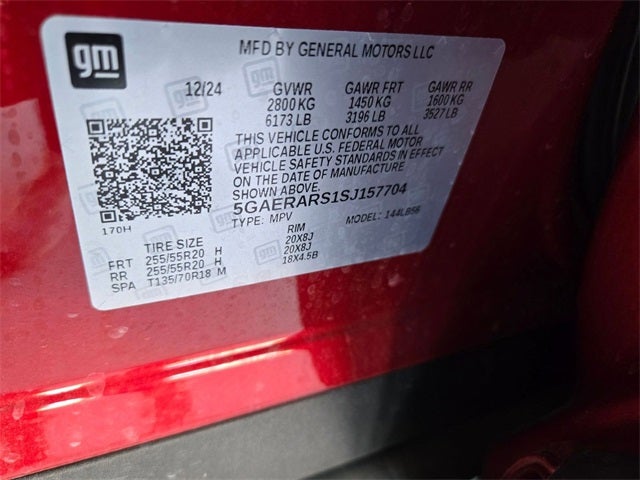Equipped with All-Weather Package (3rd Row All-Weather Floor Liner and All-Weather Floor Mats), Power Package (110-Volt Power Outlet, 2nd Row 1-Touch Flat Folding Seat, 3rd Row 60/40 Power Split-Folding Bench, Head-Up Display, Heated Wiper Park, Memory Settings, and Universal Home Remote), Preferred Equipment Group 1SD, 12 Speakers, 3rd row seats: split-bench, 4-Wheel Disc Brakes, ABS brakes, Air Conditioning, All-Weather Cargo Mat, Alloy wheels, AM/FM radio: SiriusXM with 360L, Auto High-beam Headlights, Auto-dimming door mirrors, Auto-dimming Rear-View mirror, Automatic temperature control, Bose Premium 12-Speaker Audio System, Brake assist, Bumpers: body-color, Compass, Delay-off headlights, Driver 4-Way Power Lumbar Seat Adjuster, Driver 8-Way Power Seat Adjuster, Driver door bin, Driver vanity mirror, Dual front impact airbags, Dual front side impact airbags, Electronic Stability Control, Emergency communication system: OnStar and Buick connected services capable, Four wheel independent suspension, Front anti-roll bar, Front Bucket Seats, Front Center Armrest, Front dual zone A/C, Front Passenger 4-Way Power Lumbar Seat Adjuster, Front Passenger 6-Way Power Seat Adjuster, Front reading lights, Fully automatic headlights, Heated door mirrors, Heated Driver and Front Passenger Seats, Heated front seats, Heated steering wheel, Illuminated entry, Leather steering wheel, Leatherette Seat Trim, Low tire pressure warning, Navigation System, Occupant sensing airbag, Outside temperature display, Overhead airbag, Overhead console, Panic alarm, Passenger door bin, Passenger vanity mirror, Power door mirrors, Power driver seat, Power Liftgate, Power passenger seat, Power steering, Power windows, Premium audio system: Buick Infotainment System, Radio data system, Radio: Infotainment Center, Rear air conditioning, Rear anti-roll bar, Rear reading lights, Rear side impact airbag, Rear window defroster, Rear window wiper, Remote keyless entry, Security system, SiriusXM with 360L Trial Subscription, Speed control, Speed-sensing steering, Spoiler, Steering wheel mounted audio controls, Tachometer, Telescoping steering wheel, Tilt steering wheel, Traction control, Trip computer, Turn signal indicator mirrors, Variably intermittent wipers, Voltmeter, Wheels: 20 Alloy with Medium Android Finish, Wireless Apple CarPlay, and Wireless Google Android Auto.
