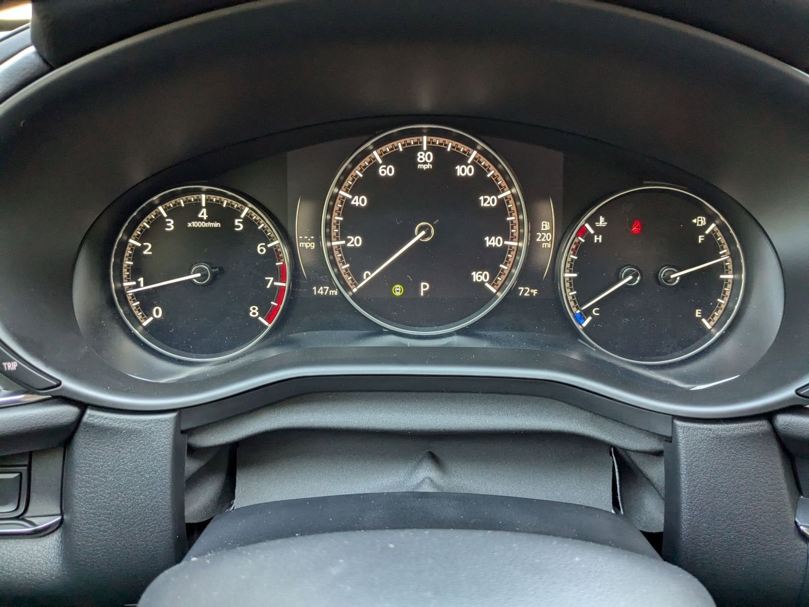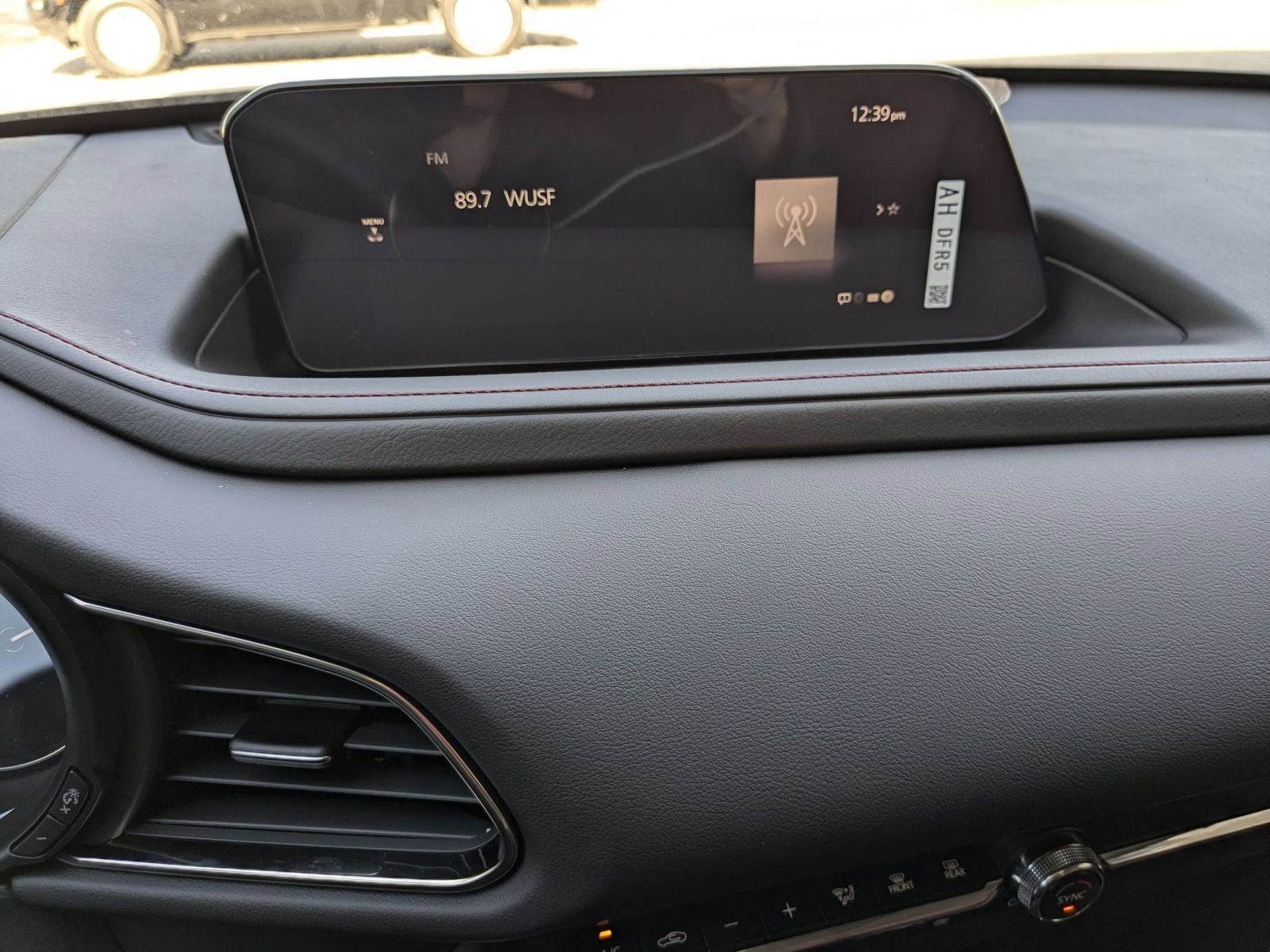 Equipped with 4-Wheel Disc Brakes, 8 Speakers, ABS brakes, Air Conditioning, Alloy wheels, AM/FM radio, AppLink/Apple CarPlay and Android Auto, Auto High-beam Headlights, Automatic temperature control, Black Lug Nuts & Black Wheel Locks, Black Mazda Logo Slimline License Plate Frame, Brake assist, Bumpers: body-color, Compass, Delay-off headlights, Driver door bin, Driver vanity mirror, Dual front impact airbags, Dual front side impact airbags, Electronic Stability Control, Emergency communication system: Mazda Connected Services (3-year trial subscription included), Exterior Parking Camera Rear, Front anti-roll bar, Front Bucket Seats, Front Center Armrest, Front dual zone A/C, Front reading lights, Front wheel independent suspension, Fully automatic headlights, Heated door mirrors, Heated Front Bucket Seats, Heated front seats, Illuminated entry, Knee airbag, Leather Seat Trim, Leather Shift Knob, Leather steering wheel, Low tire pressure warning, MAZDA CONNECT Infotainment System, Memory seat, Occupant sensing airbag, Outside temperature display, Overhead airbag, Overhead console, Panic alarm, Passenger door bin, Passenger vanity mirror, Power door mirrors, Power driver seat, Power moonroof, Power steering, Power windows, Radio data system, Radio: AM/FM/HD Audio System, Rain sensing wipers, Rear seat center armrest, Rear side impact airbag, Rear window defroster, Rear window wiper, Remote keyless entry, Speed control, Speed-sensing steering, Split folding rear seat, Spoiler, Stainless Steel Rear Bumper Guard, Steering wheel mounted audio controls, Tachometer, Telescoping steering wheel, Tilt steering wheel, Traction control, Trip computer, Turn signal indicator mirrors, Variably intermittent wipers, and Wheels: 18 x 7J Aluminum Alloy.