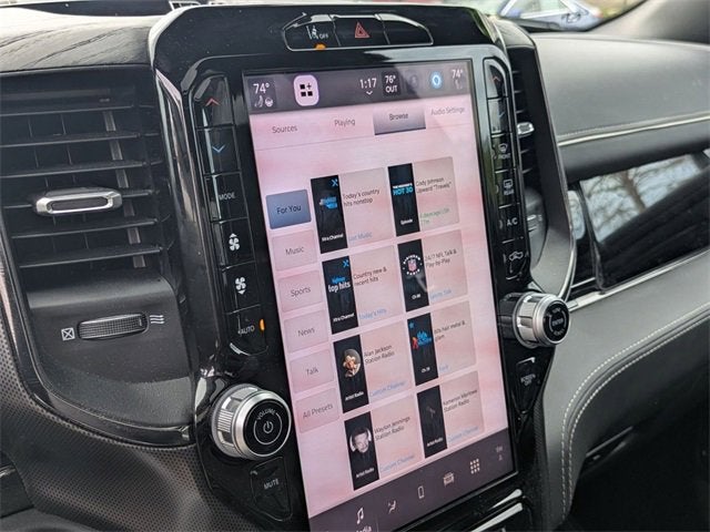 Equipped with Quick Order Package 22M Limited, 4WD, Dome Dual LED Reading Lamp, Dual-Pane Panoramic Sunroof, LED Dome/Reading Lamp, 19 Speakers, 3.92 Rear Axle Ratio, 4-Wheel Disc Brakes, 4G LTE Wi-Fi Hot Spot, ABS brakes, Adjustable pedals, Air Conditioning, Alloy wheels, AM/FM radio: SiriusXM with 360L, Apple CarPlay, Apple CarPlay/Android Auto, Audio memory, Auto High-beam Headlights, Auto Power-Folding Mirrors, Auto-dimming door mirrors, Auto-Dimming Exterior Driver Mirror, Auto-dimming Rear-View mirror, Auto-leveling suspension, Automatic temperature control, Bodyside moldings, Brake assist, Bumpers: chrome, Chrome Exterior Mirrors, Compass, Connected Travel & Traffic Services, Connectivity - US/Canada, Convex Wide-Angle Exterior Mirror Insert, Delay-off headlights, Driver door bin, Driver vanity mirror, Dual front impact airbags, Dual front side impact airbags, Electronic Stability Control, Exterior 115V AC Outlet, Exterior Mirrors Courtesy Lamps, Exterior Mirrors w/Heating Element, Exterior Mirrors w/Memory, Exterior Mirrors w/Supplemental Signals, Front anti-roll bar, Front Bucket Seats, Front Center Armrest w/Storage, Front dual zone A/C, Front fog lights, Front License Plate Bracket, Front reading lights, Front wheel independent suspension, Fully automatic headlights, Garage door transmitter, Genuine wood console insert, Genuine wood dashboard insert, Genuine wood door panel insert, Google Android Auto, GPS Antenna Input, GPS Navigation, harman/kardon® Speakers, HD Radio, Heated door mirrors, Heated front seats, Heated rear seats, Heated steering wheel, Illuminated entry, Integrated Voice Command w/Bluetooth®, Leather steering wheel, Low tire pressure warning, Manufacturer's Statement of Origin, Memory seat, Navigation System, Occupant sensing airbag, Outside temperature display, Overhead airbag, Overhead console, Panic alarm, ParkView Rear Back-Up Camera, Passenger door bin, Passenger vanity mirror, Pedal memory, Power door mirrors, Power driver seat, Power passenger seat, Power steering, Power windows, Premium Quilted Leather Bucket Seats, Radio data system, Radio: Uconnect 5 Nav w/12.0 Display, Rain sensing wipers, Rear anti-roll bar, Rear reading lights, Rear seat center armrest, Rear step bumper, Rear window defroster, Remote keyless entry, Security system, SiriusXM w/360L, Speed control, Split folding rear seat, Steering wheel mounted audio controls, Tachometer, Telescoping steering wheel, Tilt steering wheel, Traction control, Trailer Brake Control, Trip computer, Turn signal indicator mirrors, USB Host Flip, Variably intermittent wipers, Ventilated front seats, Ventilated rear seats, Voltmeter, and Wheels: 20 x 9 Premium Paint/Polished.